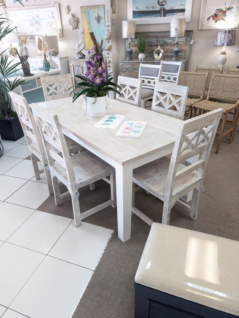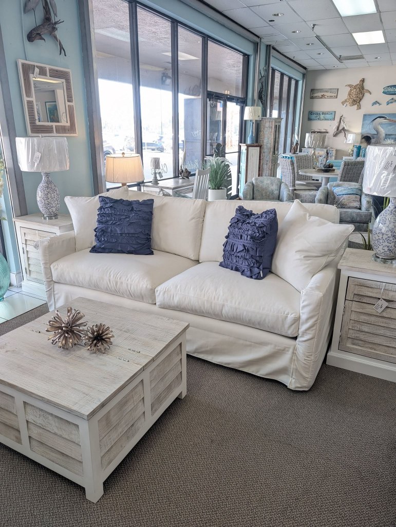 We are a family owned business for 20+ years. We offer custom furniture, Decor and Design. Our design team is able to make brand name inspired styles for a fraction of the price. Having a passion for helping customers find just the right thing for their individual style. With a showroom of almost 7,000 sq. ft. we have furniture for every room in your home. We have furniture and decor for dining rooms, bedrooms, living rooms, and more. We also have pillows, bedding, lamps, paintings, décor, etc. We also offer Delivery at a great price. Our goal is to create the interior of your home with a fresh perspective that reflects your personality through flow, color, texture, and style. A well designed space should evoke both a sense of calmness and joy. Our store has become our home away from home and it is important to our family to make it a special, welcoming, and inspiring place for our customers, as well as for ourselves. The Gunter family invites you to shop, discover and explore the mix of coastal, beach, rustic, and cottage style furniture, home accents and “One of a Kind” finds. We find it is the art of mixing the new with the old that makes your home unique and personal. The quickly changing inventory keeps our regulars coming back often….like collecting seashells and sea glass on a beautiful sand beach, you never know what you’re going to find! We are located Beachside in Indian Harbour Beach, in the Walmart plaza, at the corner of A1A and Eau Gallie Blvd
